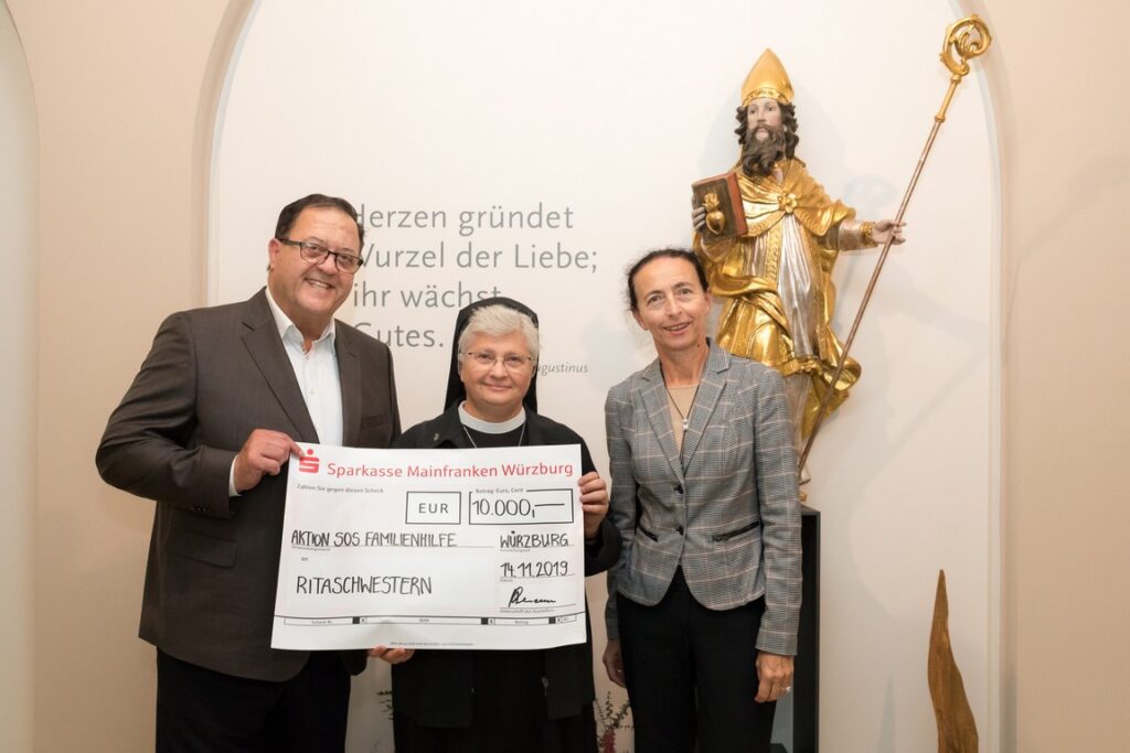 „Wir schätzen Ihre Arbeit in den Familien, Ihre Fürsorge für Menschen aller Generationen und die Ritaschwestern als Ordensgemeinschaft. Deshalb war für uns keine Frage, wem wir die Spendengelder zu unserem Jubiläum übergeben möchten“, erklärt das Ehepaar bei der Übergabe im Würzburger Mutterhaus.
