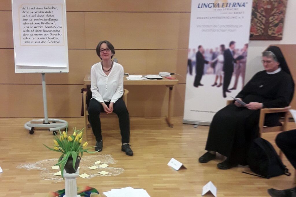Zwölf Personen haben am 31. Januar 2020 am Seminartag im Festsaal der Ritaschwestern teilgenommen. Das waren Ritaschwestern sowie Mitarbeiterinnen und Mitarbeiter, die in einem Leitungsamt sind. Referentin war Heike Brandl aus Lohr. Die Dipl. Heilpädagogin (FH) und Erzieherin ist Fachdozentin und Coach für Lingva Eterna und im Heilpädagogischen Fachdienst tätig.