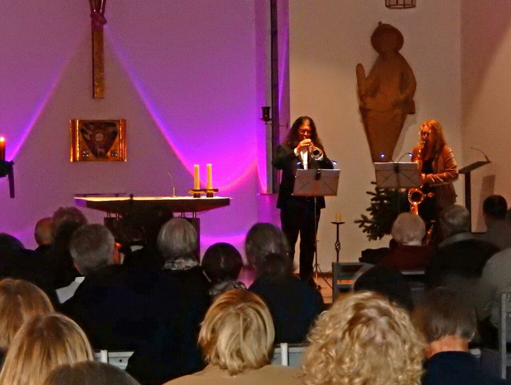 Die „kleinste Big Band der Welt“ ist am 2. Adventssonntag 2018 bei den Ritaschwestern aufgetreten. Das ist „duopoli -art in duo“.