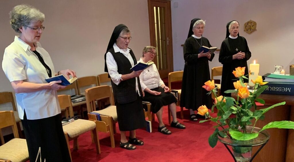 Abt Christian Meyer OSB aus der Benediktinerabtei Engelberg feierte mit den Schwestern die Eucharistie. Schw. Assunta hatte sich die Texte des Festes Maria Heimsuchung gewünscht. In seiner Predigt meditierte Abt Christian über die Lesung aus dem 12. Kapitel des Römerbriefes: „Eure Liebe sei ohne Heuchelei…. seid einander in geschwisterlicher Liebe zugetan, übertrefft euch in gegenseitiger Achtung … Seid untereinander eines Sinnes!…“ In dieser Lesung gehe es immer um das Wir, brachte Abt Christian den Text auf den Punkt.