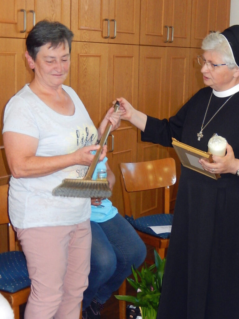 Bei ihrer Arbeit hatte Frau Hofmann mit betagten und pflegebedürftigen Schwestern zu tun. Manches Zimmer war nicht einfach zu reinigen. „Sie waren immer rücksichtsvoll und behilflich“, lobte Schw. Rita-Maria bei der Verabschiedung und nannte Frau Hofmann „einen guten Menschen“. Für keine Arbeit sei sie sich zu schade gewesen und war dabei immer freundlich und verständnisvoll. „Vergelt’s Gott, Frau Hofmann, Sie werden uns fehlen“, bedankte sich die Generaloberin.