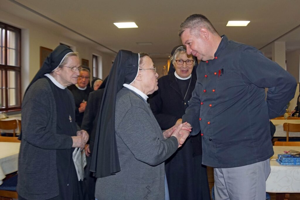 Bei einer kleinen Feierstunde im Refektor und einem letzten Mittagessen zusammen mit den Schwestern bedankte sich Generaloberin Schw. Rita-Maria bei Herrn Hefner. Er habe bestens ins Küchenteam gepasst, wunderbare Essen gekocht und sich auf die Wünsche der Schwestern eingelassen. Die Ritaschwestern würden immer gern an ihn denken und ihm stets verbunden bleiben. Vor allem, weil er im November letzten Jahres bei Gasunfall in der Küche schnell, besonnen und tatkräftig reagiert hatte, so dass außer einem gehörigen Schreck und Sachschäden vergleichsweise wenig passierte.